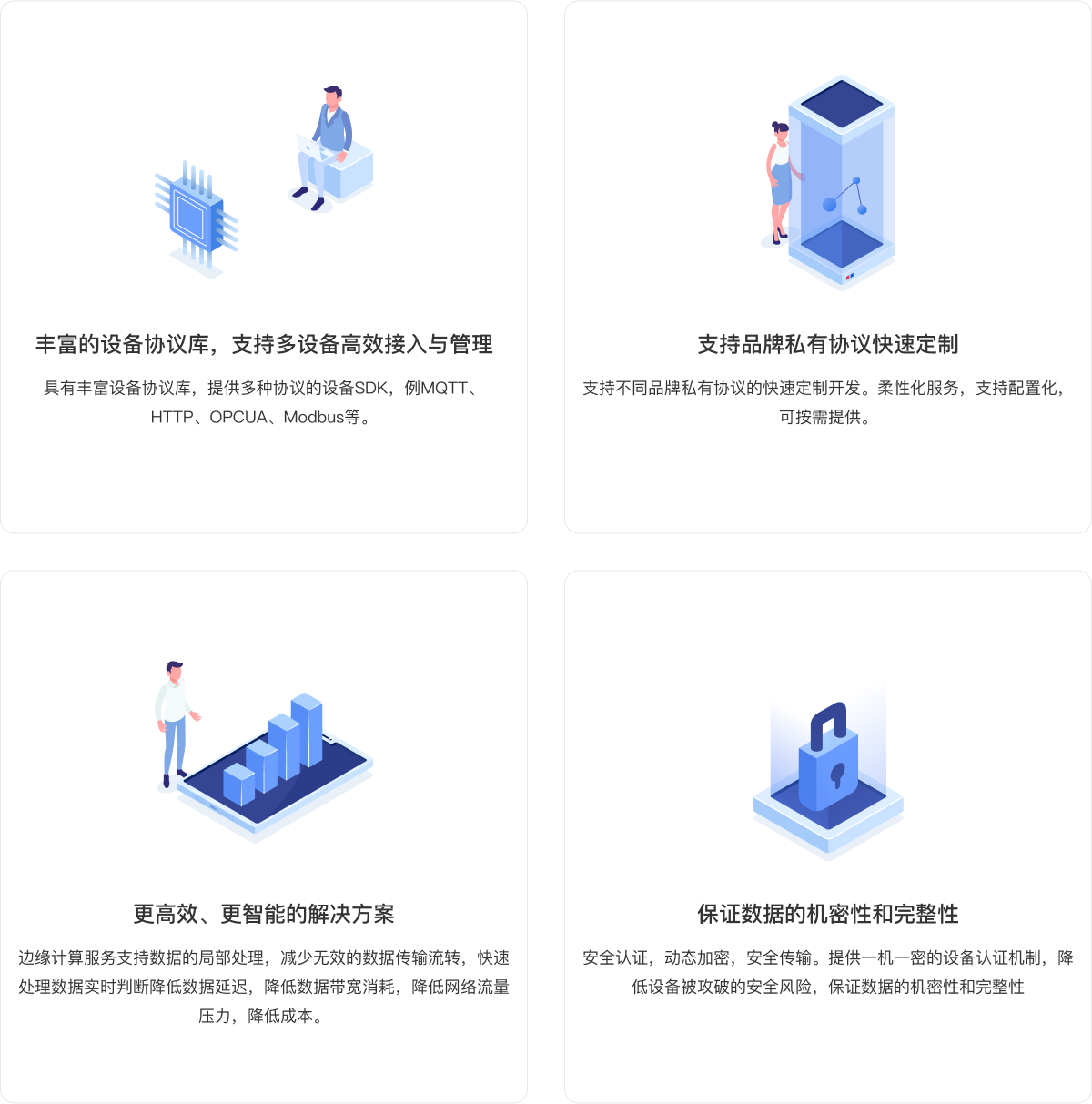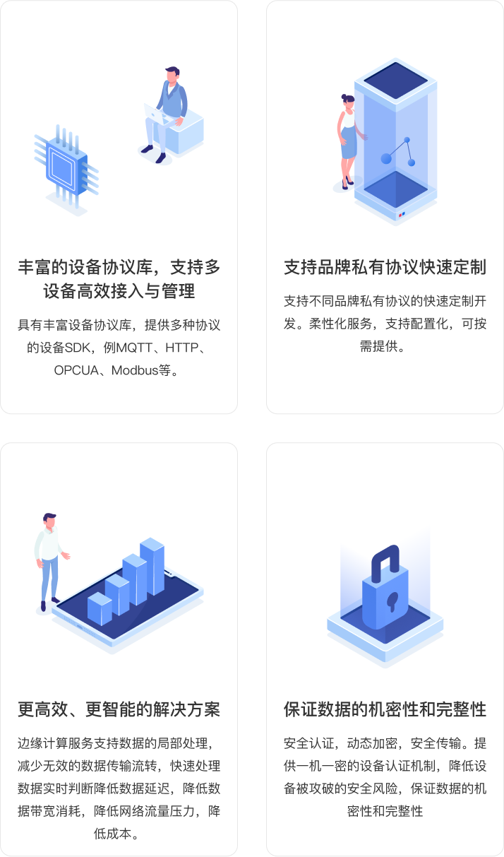 1、平臺(tái)通過(guò)物聯(lián)網(wǎng)關(guān)對(duì)接各種不同設(shè)備、傳感器、第三方系統(tǒng)等,合并數(shù)據(jù)并與不同的系統(tǒng)集成,為上層業(yè)務(wù)提供數(shù)據(jù)來(lái)源和服務(wù)支持 。